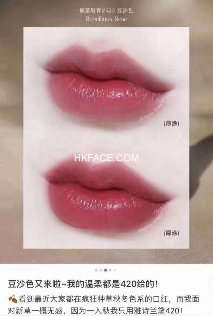 雅诗兰黛专柜420色唇膏大中样2.8克,正装是3.3g🉐88一支,预定才有最温柔的豆沙色,老少通吃~超级衬肤色,又很滋润!